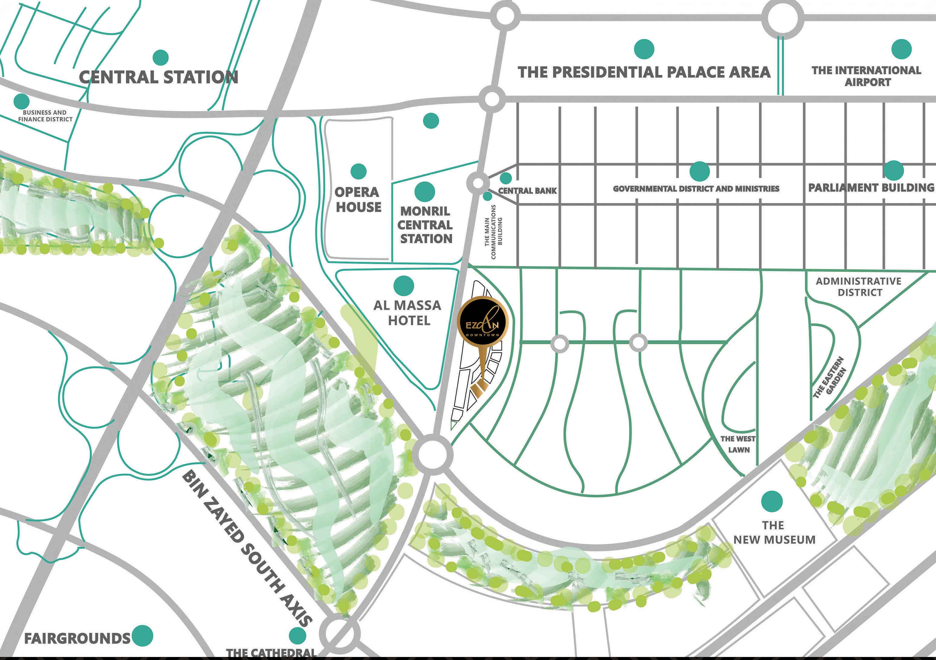 تم تصميم مول ازدان العاصمة الإدارية الجديدةEzdan Mall New Capital في قلب العاصمة الإدارية الجديدةفي منطقة الداون تاون وسط مجموعة من ارقى الكمبوندات داخل العاصمة الإداريةالجديدة ، بالقرب من أبرز المعالم وأهم المناطق الحيوية بالعاصمة الإدارية الجديدة منها :